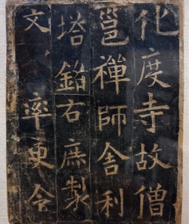 « Estampage d'une calligraphie d'Ouyang Xun, Dunhuang (Chine), VIIᵉ siècle », photographie par Zunkir, sous licence Creative Commons Attribution-Share Alike 4.0 International, via Wikimedia Commons.